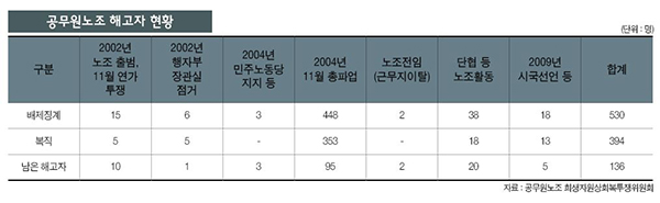 2003년 공무원들의 노조결성을 허용하겠다고 공약한 노무현 정부가 출범했지만, 돌아온 건 530명의 해고와 3천 명의 징계였다. 하지만 공무원노동자는 탄압을 무릅쓰고 2004년 4만 5천 명의 총파업 투쟁을 벌이며 ‘노동자’로서 정권과 타협하지 않는 ‘민주노조’의 길을 갔다. 남은 136명의 해고자가 선두에서 오랜 투쟁을 펼친 끝에 해고자들은 문재인 정부 시절 복직했다.
