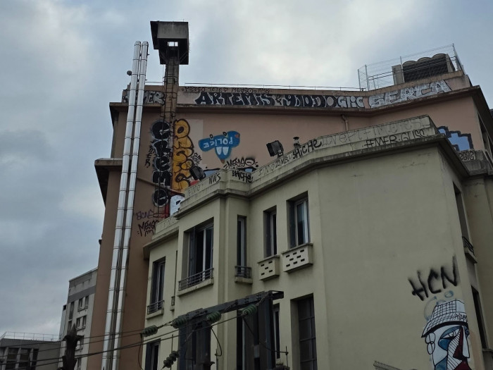 생드니의 무역노조 사무실. 이탈리아에서도 종종 보게 될 스프레이로 그린 낫과 망치를 이때 처음으로 보았다.