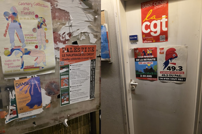 파리 북역 인근은 세계요리점이나 수입 식료품점, 전통의상점 등이 있는 서아시아계 이민자 거리로, 담배 같은 물건들을 파는 행상인들이 종종 있었다. 도미토리에 도착할 무렵 다음날 북역 인근에서 만나게 될 T 동지에게 저녁의 집담회 일정을 추천받아, 일정을 변경해 체크인 후 바로 출발한다. 목적지는 북역에서 고속열차로 한 정거장을 가면 나오는 93번 지역인 생드니. 역에서 무역노조 사무실까지는 북역보다 피부색이 어둡고 아프리카계에 가까워 보이는 사람들이 커뮤니티를 이루고 있고, 파리 중심가보다는 좀 더 현대적이고 개량된 건축양식의, 길에는 트램이 다니고 통속적인 품목이 늘어선 슈퍼나 저렴한 빵집 등이 있는 한적한 주택가였다. 교통이나 입지, 주변 환경을 고려할 때 상대적으로 소득수준이 낮고 파리 시내로 출퇴근하는 사람들이 살고 있는 위성도시로 느껴졌다.