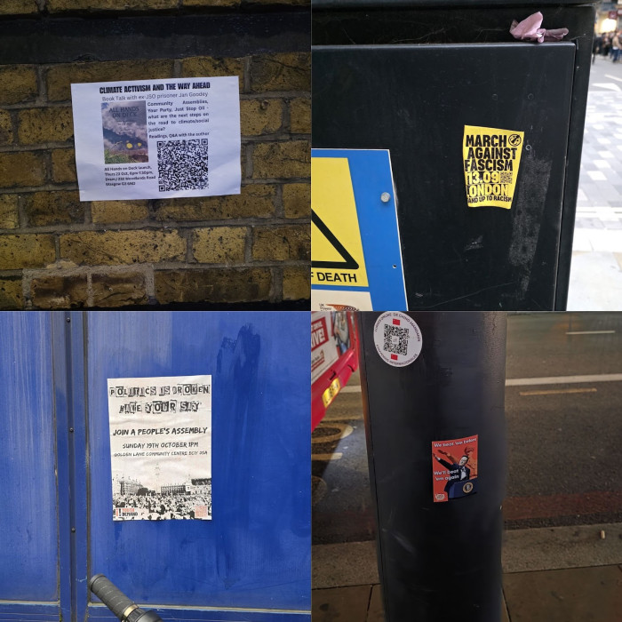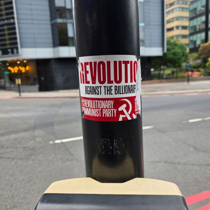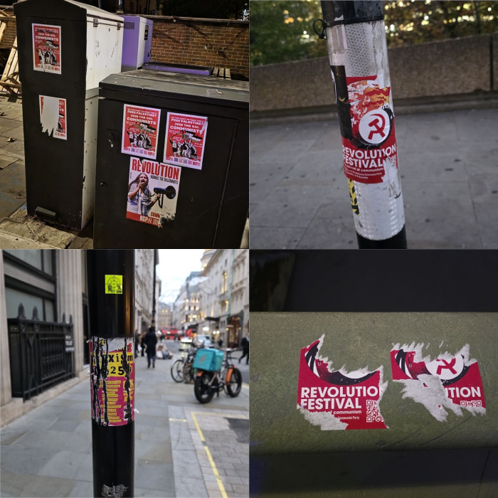 런던에서 항상 보였던 영국 혁명 공산당(RCP. 마르크스-레닌주의 공산당)의 선전물은 대부분 QR코드가 훼손되어 있었다.