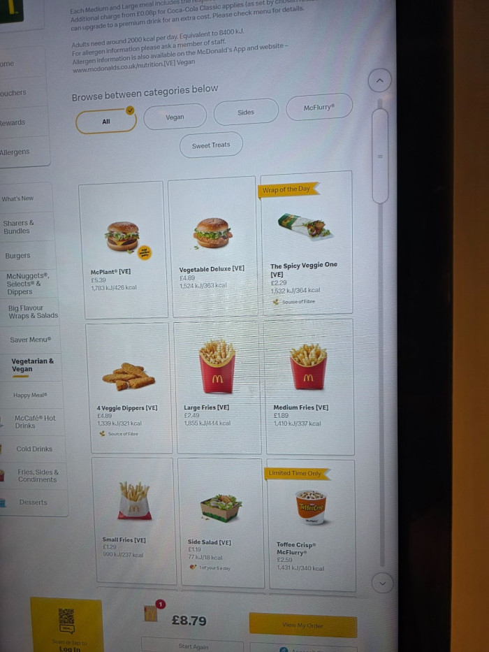 맥도날드의 비건 메뉴. 병아리콩으로 만든 너겟 같은 것Dipper과 소스에서는 커리 맛이 난다.